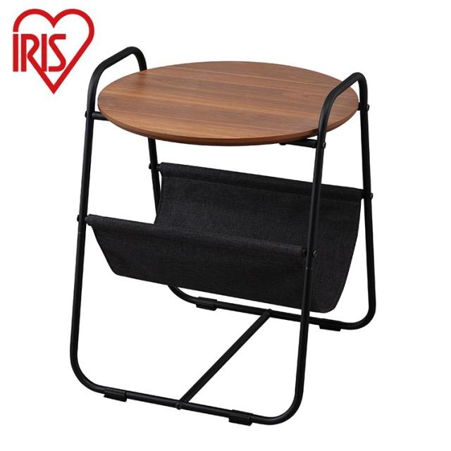 アイリスオーヤマ 丸型 収納付き サイドテーブル ミニテーブル ソファテーブル カフェテーブル 円形天板 スチールフレームサイドテーブル ウォールナット SFST-400F IRIS OYAMA(代引不可)【送料無料】