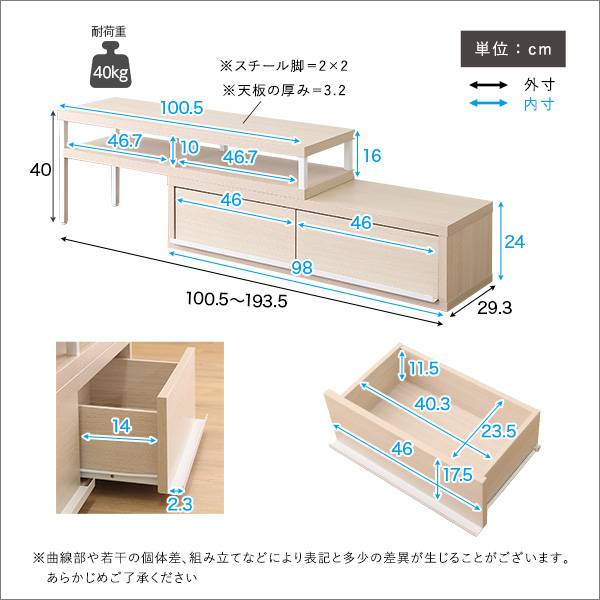 上段と下段の組み合わせて伸縮ができる、さわやかな完成品伸縮テレビ台!