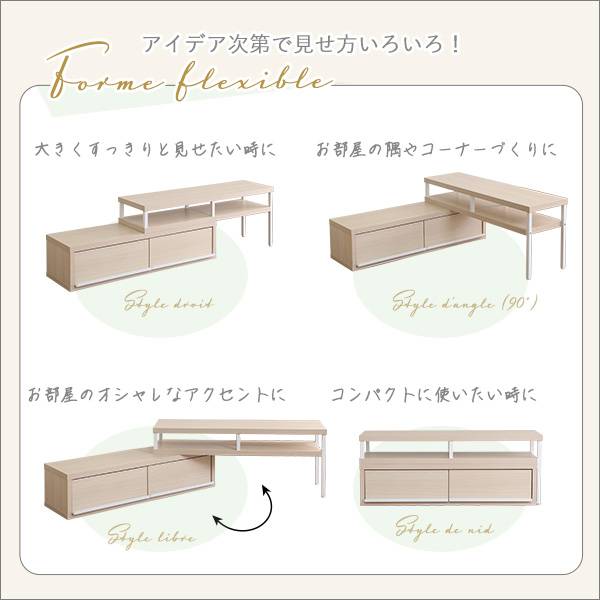 お部屋やテレビのサイズに合わせ、コンパクトにもワイドにも自由なレイアウトが楽しめます。
