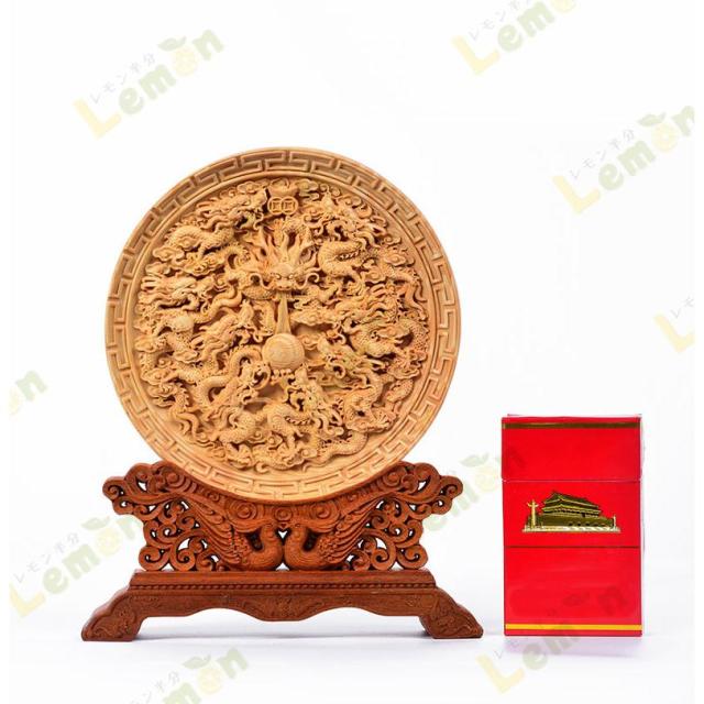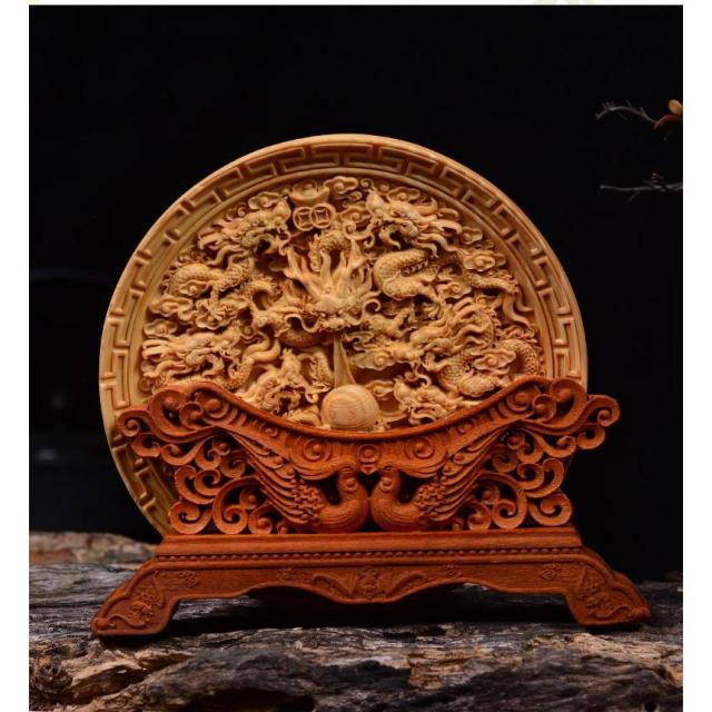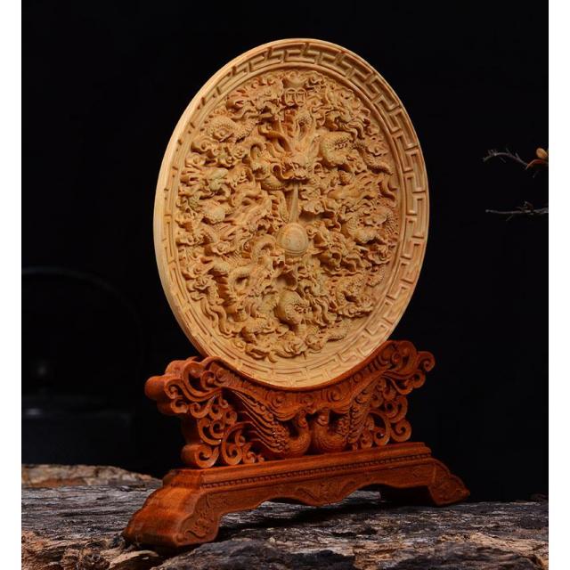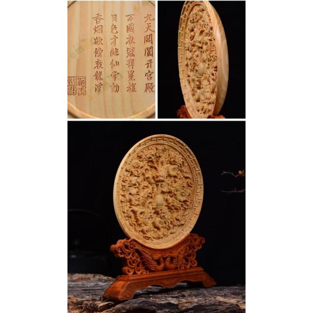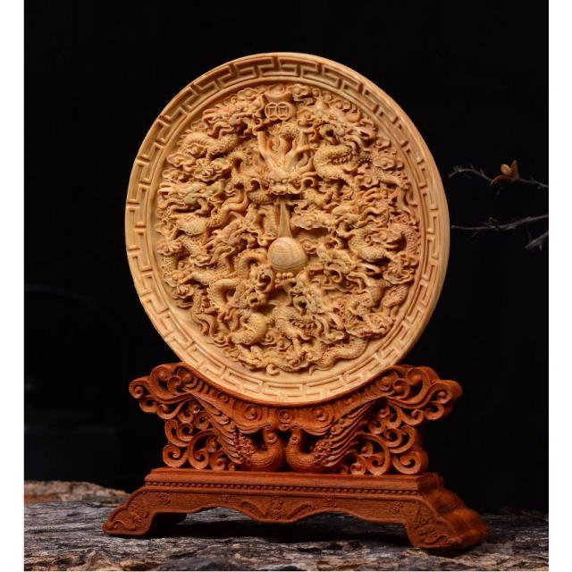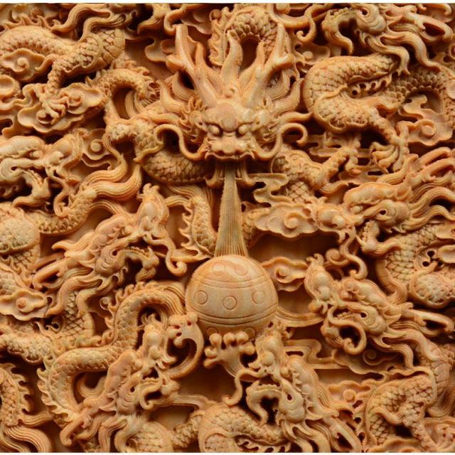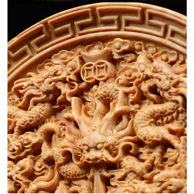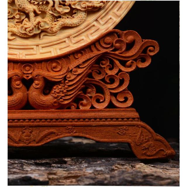 中心の珠を囲むように立体的に彫刻された龍神と鳳凰は、細部まで繊細に彫刻されています。