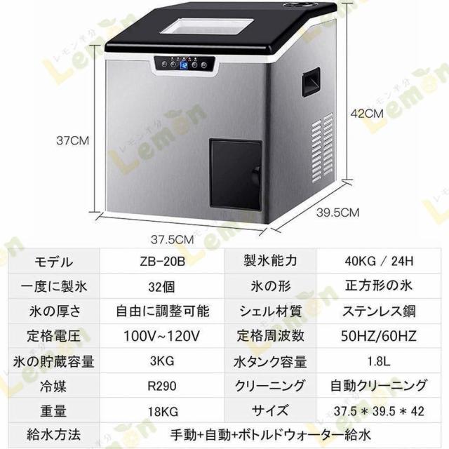 製氷機 業務用 家庭用 卓上型 自動製氷機 一度製氷32個 高速 タンク容量1.8L 氷貯蔵容量3KG 大容量 1日最大40kg 簡単操作 ステンレス鋼 アイスメーカー 簡単操作
