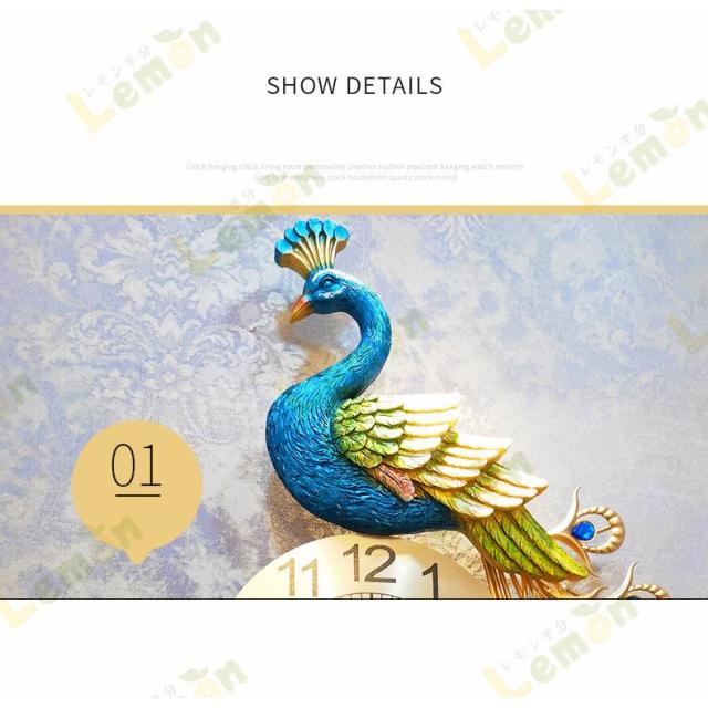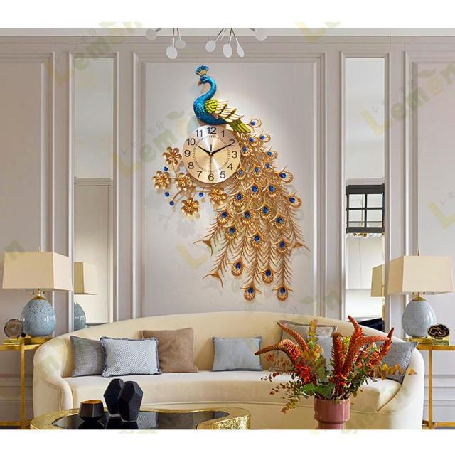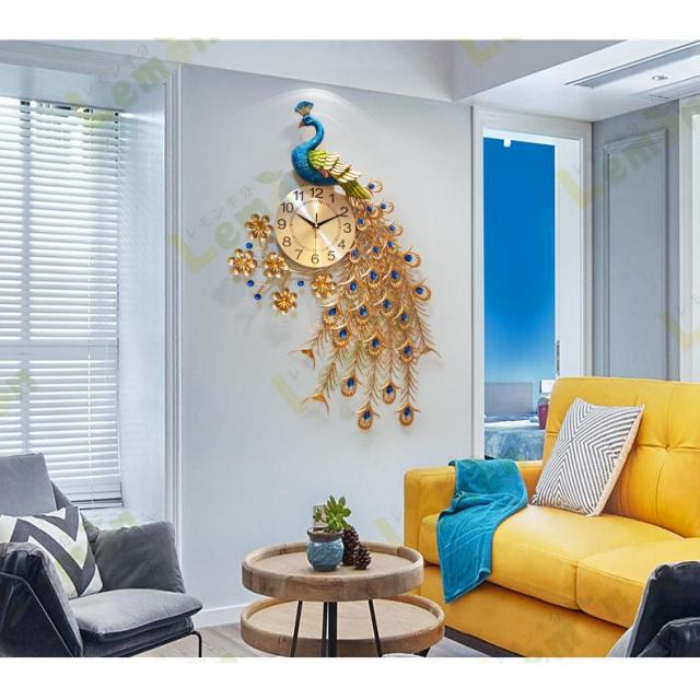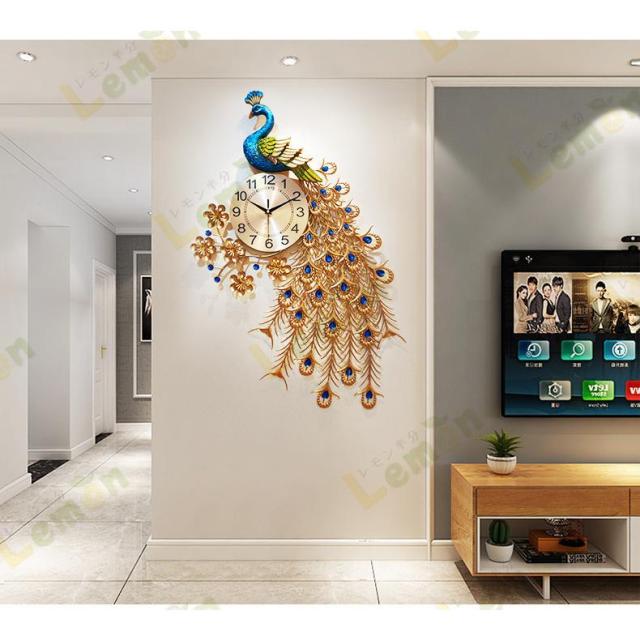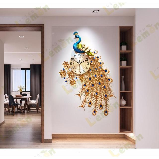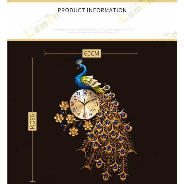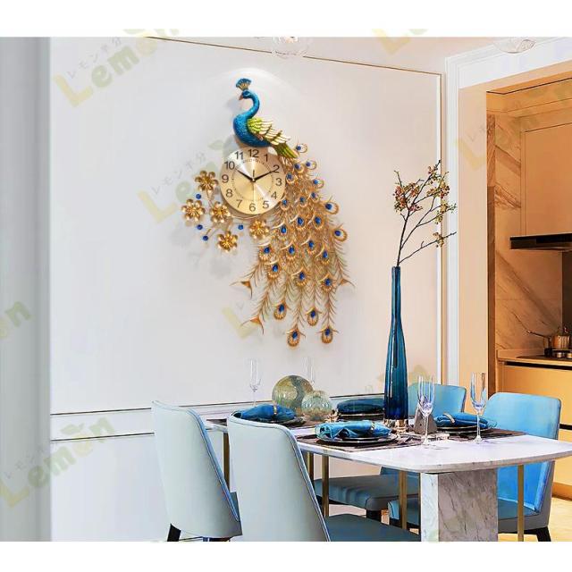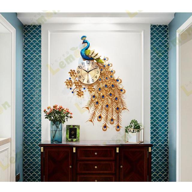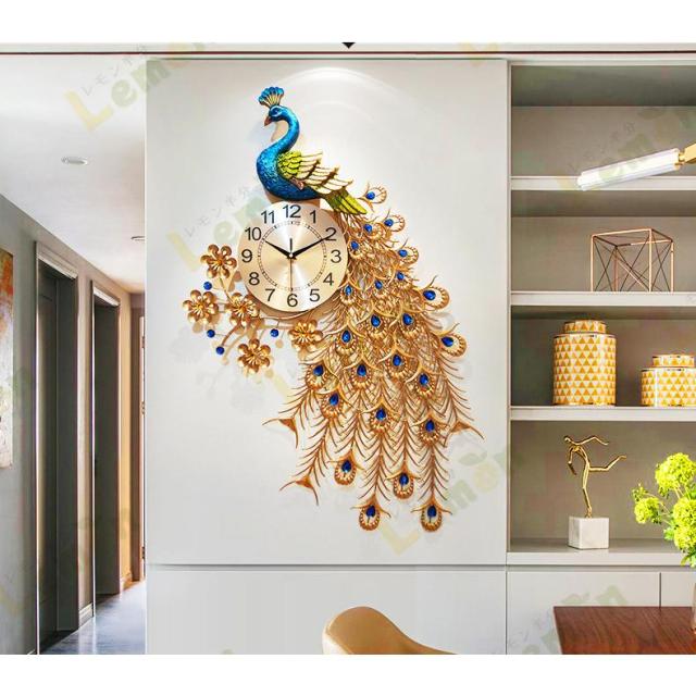 壁掛け時計 孔雀 特大 約60x93cn 尾長 掛け時計 ブルーストーン クジャク デザイナーズ 掛時計 フラワー おしゃれ エレガント クラシック オシャレ 壁掛け