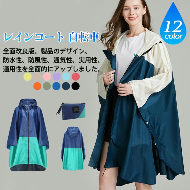 レインコート 自転車 レディース ポンチョ 収納ケース付き レインウェア 雨合羽 おしゃれ ポンチョ 前開き リュック 撥水 通気