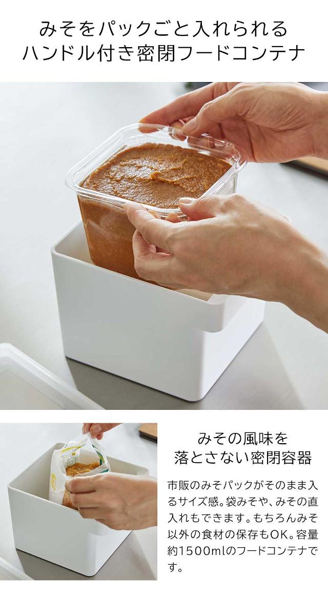 【取り寄せ発送】【tower】みそパックごと収納 ハンドル付き 密閉フードコンテナ 約1500ml ホワイト ブラック 7737 7738【山崎実業 タワー 味噌 袋ごと 直入れ 冷凍 食洗機 電子レンジ対応 保存容器 密閉容器 作り置き 取っ手付き シンプル キッチン収納 yamazaki】