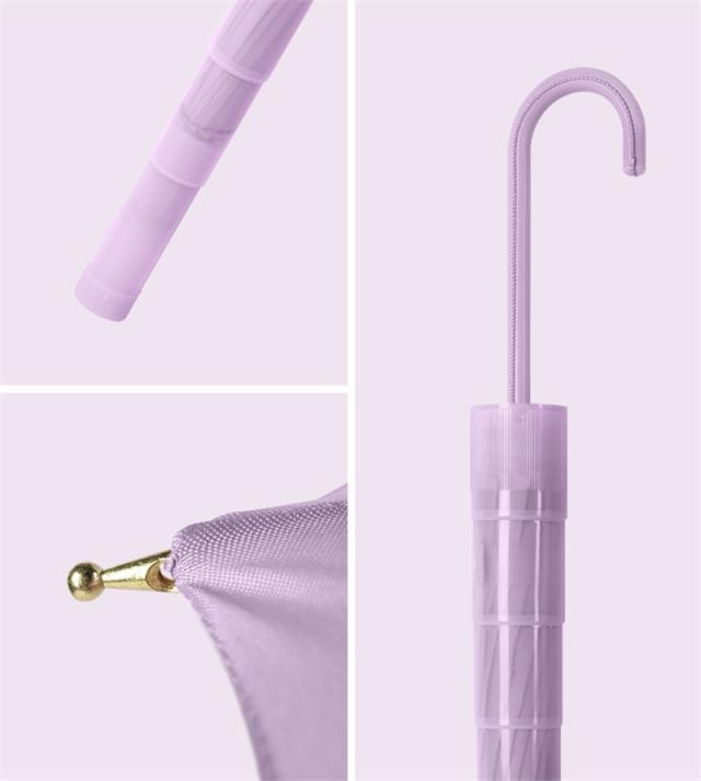 軽くて持ちやすい高強度グラスファイバー素材を採用し、丈夫さが強くて軽量で女性にも気軽に使えます。手元のハンドルは持ちやすいJ字型で、軽くて長持ちするEVCスポンジで、雨傘を差す時の肩の負担を軽減するだけではなく、持ちやすさにもこだわっている雨傘です。