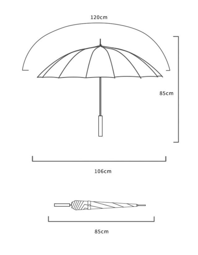 【16本仕様の美しい骨組み】:和傘を思わせる16本フレームの美しい曲線とフォルム。