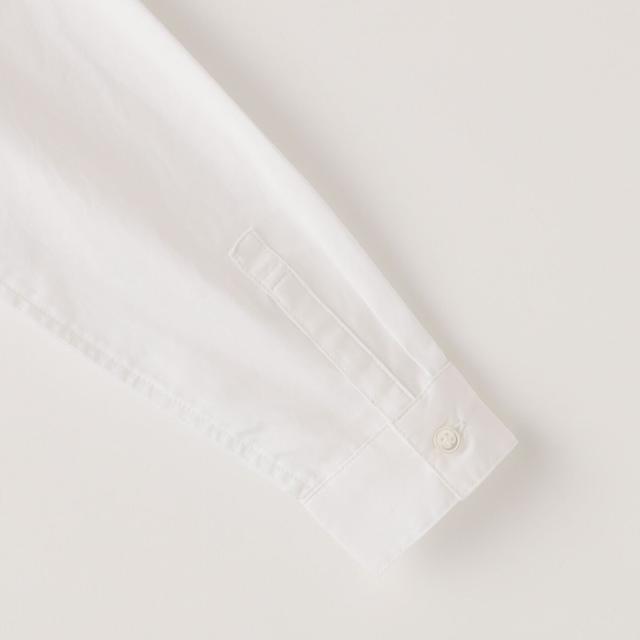 高密度なオックスフォード素材を使用した、バンドカラーシャツ。