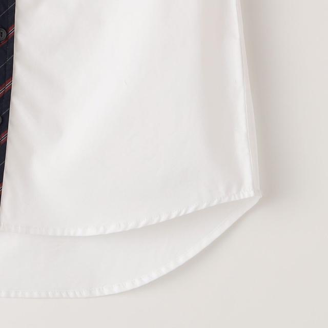 シンプルなデザインに加えて、前立てにレジメンタルストライプを切り替えたデザインは、ジャケットなどを羽織った際もさりげないアクセントに♪