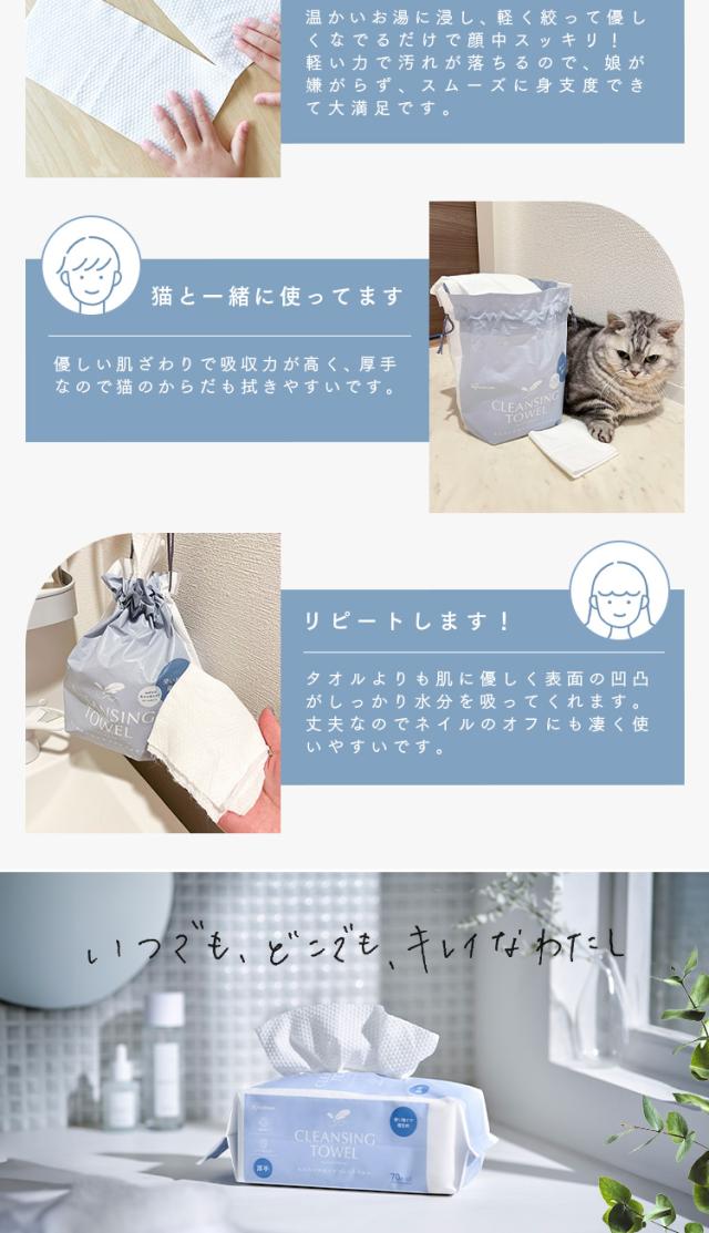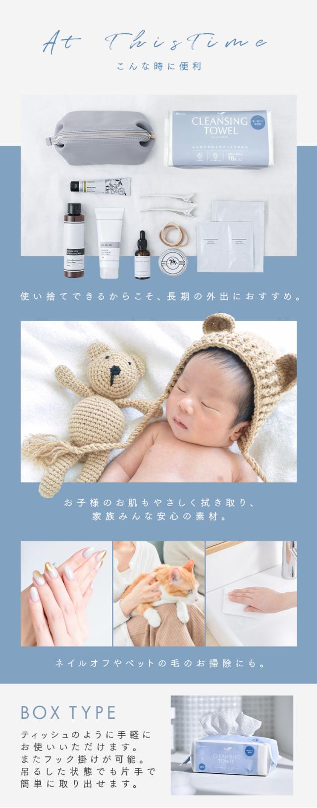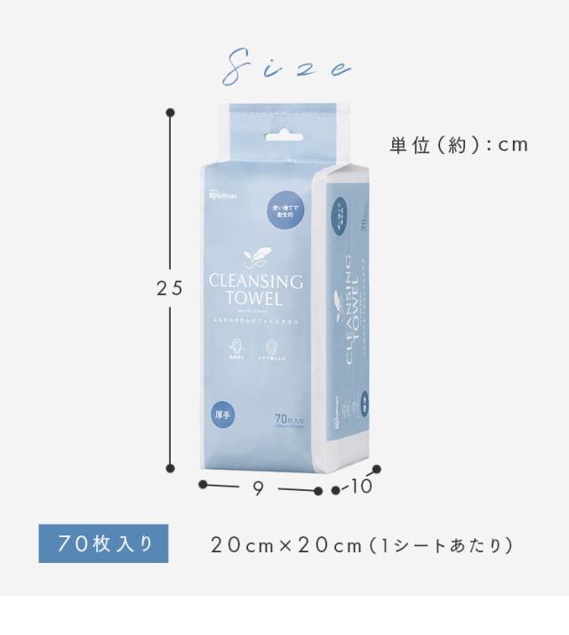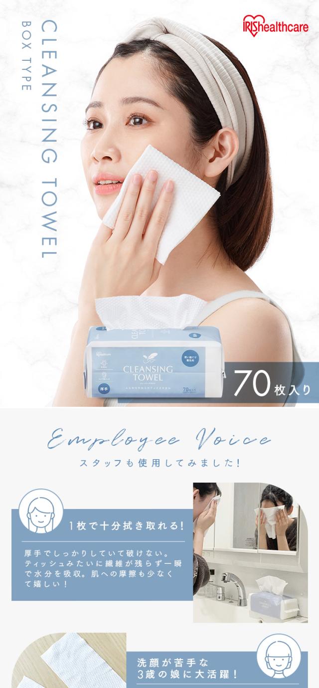 クレンジング クレンジングタオル 厚手 丈夫 アイリスオーヤマ * TSC-70B 洗顔 使い捨て 清潔 柔らかい 吸水性 ふき取り BOXタイプ 70枚 破れにくい 弾力 レーヨン100% メイク落とし 顔 手 拭き取り マニキュア フェイスパック ボックス