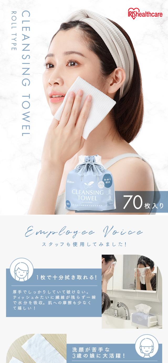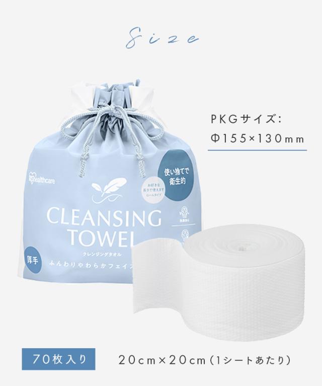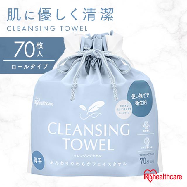 クレンジング クレンジングタオル 厚手 丈夫 アイリスオーヤマ * TSC-70R 洗顔 使い捨て 清潔 柔らかい 吸水性 掛けて収納 ふき取り ロールタイプ 70枚 破れにくい 弾力 レーヨン100% メイク落とし 顔 手 拭き取り マニキュア フェイスパック