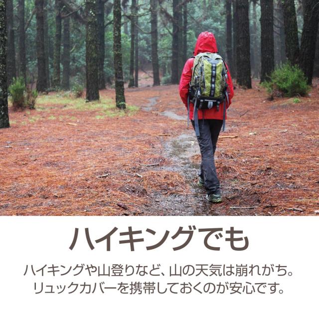 【ハイキングでも】ハイキングや山登りなど、山の天気は崩れがち。リュックカバーを携帯しておくのが安心です。