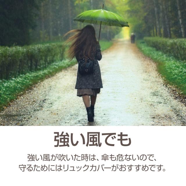 【強い風でも】強い風が吹いた時は、傘も危ないので、守るためにはリュックカバーがおすすめです。