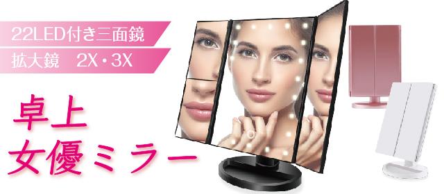 22個LED付き 3面鏡女優ミラー! 2,490円送料無料