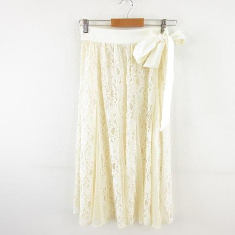 【中古】リランドチュール Rirandture ロングスカート 花柄レース フレア オフホワイト 白 1 *A297 レディース