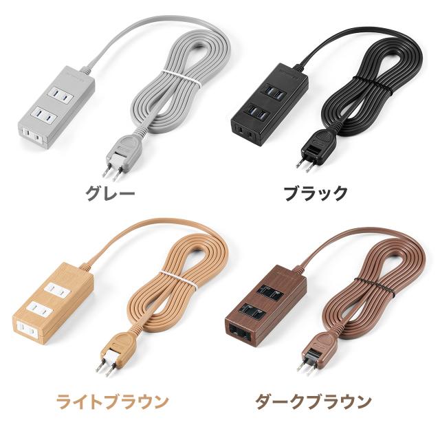 電源タップ 3個口 2P 2m マグネット 雷ガード シャッター スイングプラグ トラッキング予防 ブラック グレー ダークブラウン ライトブラウン[700-TAP053-2]