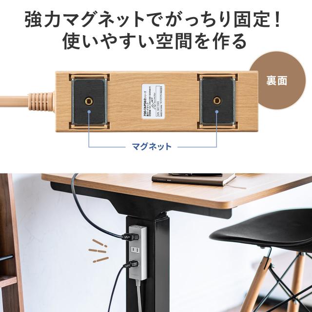 電源タップ 4個口 2P 2m マグネット 雷ガード シャッター スイングプラグ トラッキング予防 ブラック グレー ダークブラウン ライトブラウン[700-TAP054-2]