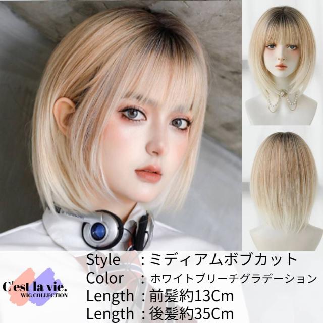 翌日出荷 フルウィッグ ミディアム ボブ ブリーチ グラデーション 医療用 かつら ネット付き 自然 小顔