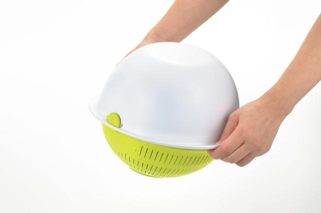 ●ザルを回転させたくない時は、ザルとボウルの重なったフチをしっかり掴んでください。