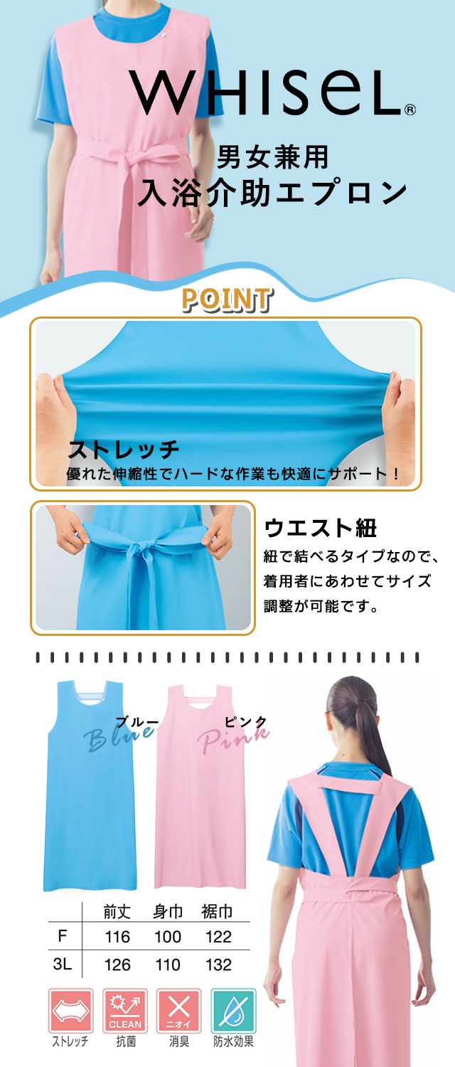 入浴介助エプロン(男女兼用) ピンク・ブルー 3Lサイズ WH90044 ホワイセル(WHISEL) 自重堂