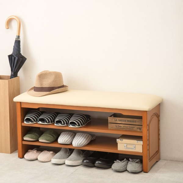 玄関ベンチ おしゃれ 木製 腰掛け 幅90cm ワイド 天然木 スリッパラック シューズラック付き