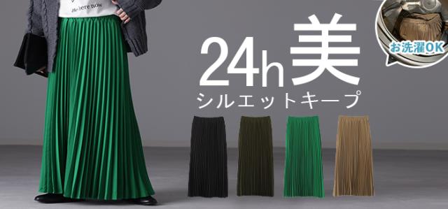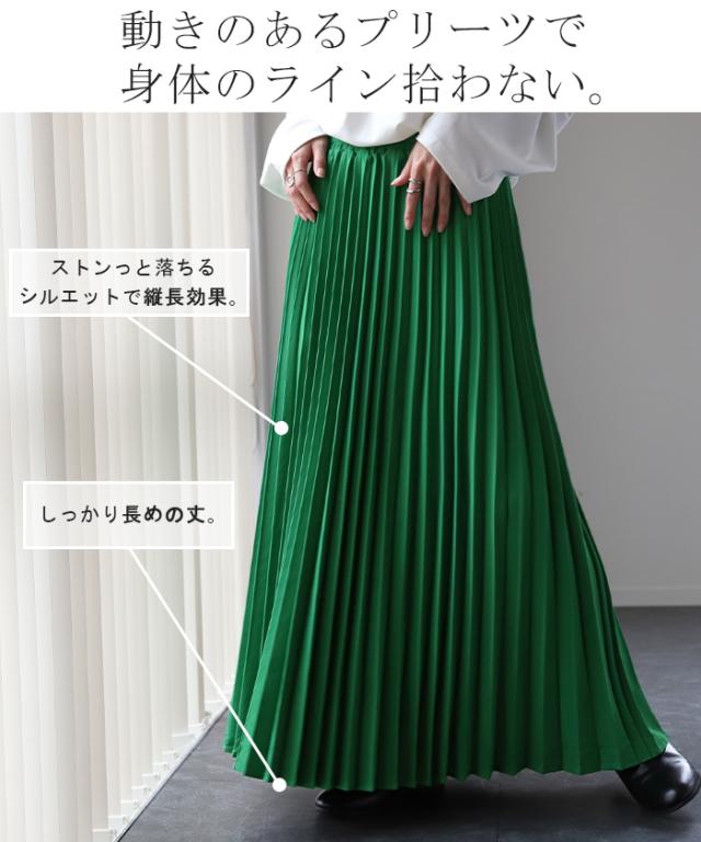 【冬SALE】 洗える 『 美シルエットキープ 』 プリーツ スカート レディース ボトムス ロングスカート ロング マキシ マキシスカート プリーツスカート 大きいサイズ 体型カバー フレア ゴム ウエストゴム Aライン 大きいサイズ 無地 グリーン 冬 秋 HUG.U 秋新作