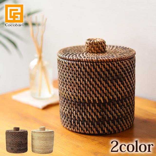 ラタンの蓋付きロールティッシュボックス(丸型) トイレットペーパー収納 小物入れ バスケット おしゃれ バリ雑貨 インテリア