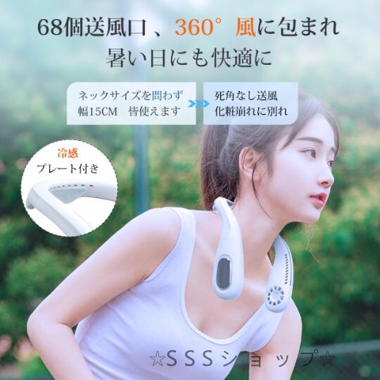 首掛け扇風機 ネッククーラー 冷却プレート付き 携帯扇風機 USB充電式 羽のない扇風機 360°冷却 風量3段階調節 物理的な冷却