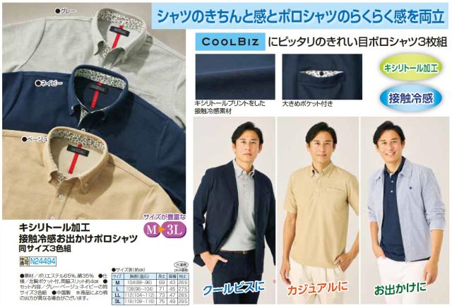 キシリトール加工 接触冷感お出かけポロシャツ 3色組 半袖 ボタンダウン ポロシャツ 無地 メンズ 紳士服 シニア 男性 グレー ネイビー ベージュ 紺色 シンプル ファッション 40代 50代 60代 70代 80代 父の日 お父さん 春物 夏物