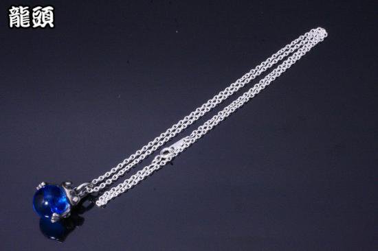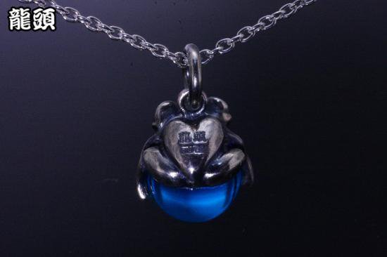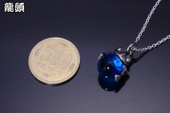 【龍頭】 蛙玉 (Blue glass) ネックレス (チェーン付き)