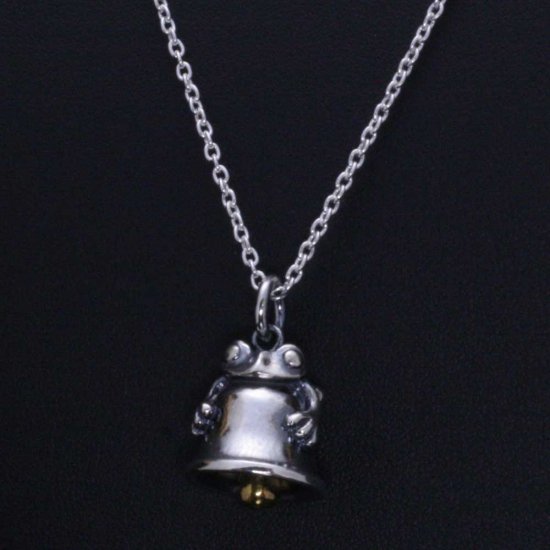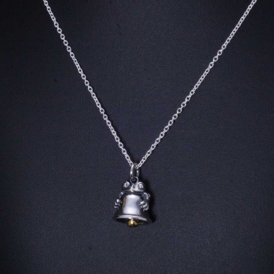 蛙が梵鐘をしっかりとつかんだ可愛らしいネックレス。