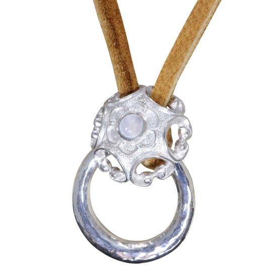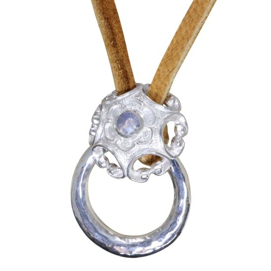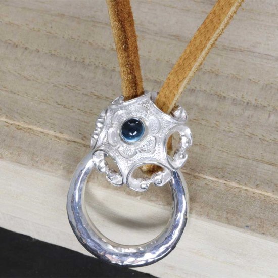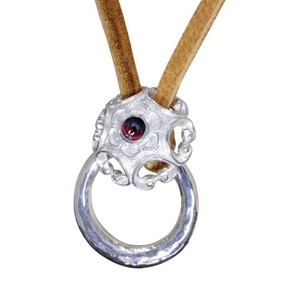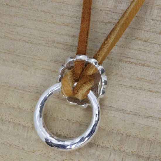 【龍頭】 丸鎚目リング×屈輪文ドーム ネックレス (革紐付き)