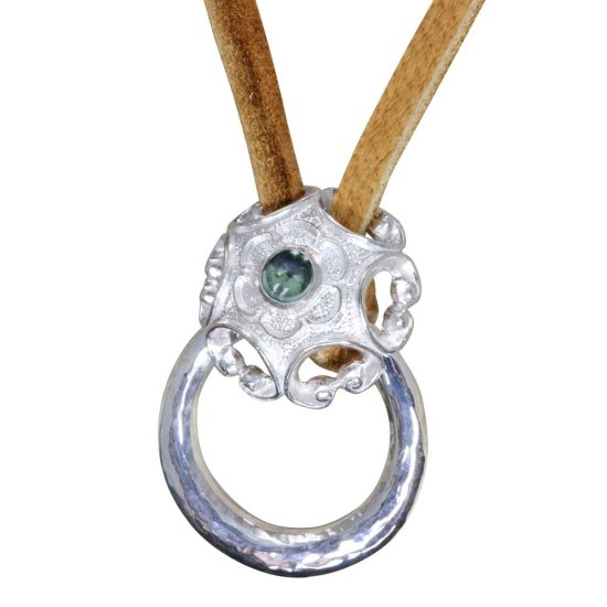 龍頭 丸鎚目リング×屈輪文ドーム ネックレス 革紐付き ペンダント メンズ シルバー シルバーネックレス メンズネックレス 天然石 シルバー950 男性