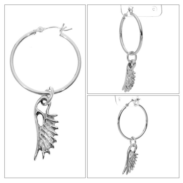 Give Me a Wing ウイング ピアス 大 フープ 付き 鏡面 2P 両耳用 シルバー レディースピアス 翼 羽 アクセサリー リングピアス 輪 輪っか シンプル