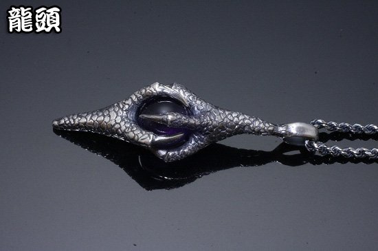 【龍頭】 二連 アメシスト 龍手 ペンダントトップ (チェーンなし)