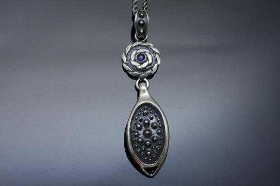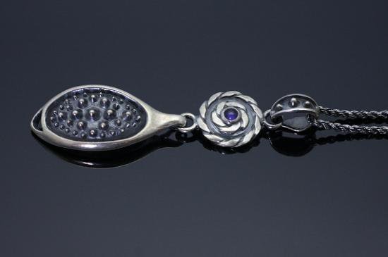 銀を捻ったツイストに伝統技法【霰】をあしらったネックレス。
