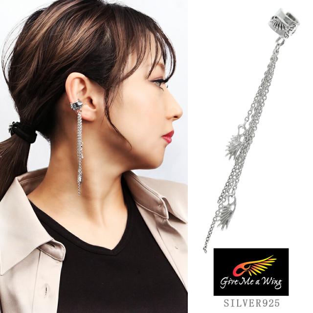 Give Me a Wing イヤーカフ チェーン & ウイング 1P 片耳用 レディース メンズ シルバー ノンホールピアス イヤークリップ イヤーカフス シルバー925
