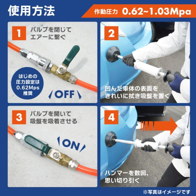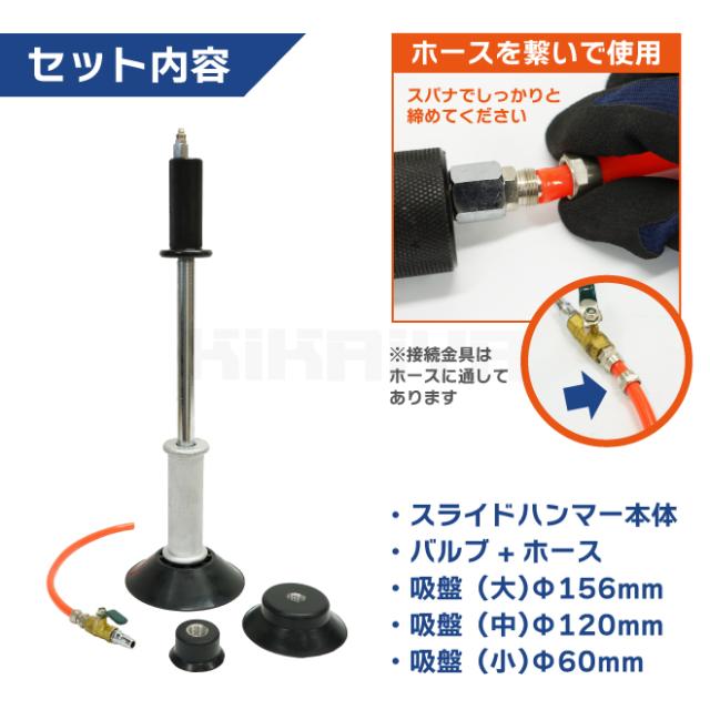 スライドハンマー エアー式 吸盤 セット エアー デントプーラー デント リペア スライディング ハンマー 車体 カーボディ 凹み 板金 修理 KIKAIYA