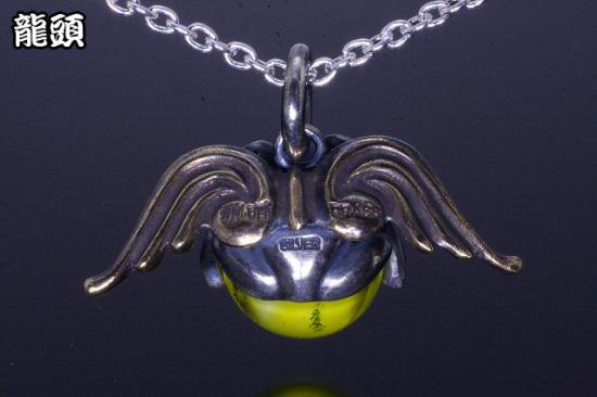 龍頭 天使蛙玉 (Yellow Glass) ネックレス チェーン付き ペンダント メンズ レディース シルバー シルバーネックレス メンズネックレス カエル 天使