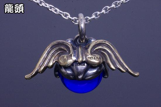 龍頭 天使蛙玉 (Cobalt Glass) ネックレス チェーン付き ペンダント メンズ レディース シルバー シルバーネックレス メンズネックレス カエル 天使