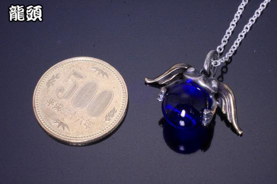 【龍頭】 天使蛙玉 (Cobalt Glass) ネックレス (チェーン付き)