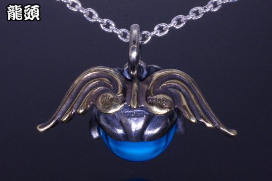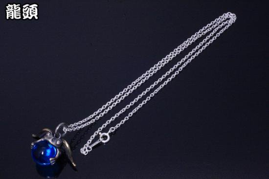 龍頭 天使蛙玉 (Blue glass) ネックレス チェーン付き ペンダント メンズ レディース シルバー シルバーネックレス メンズネックレス カエル 天使