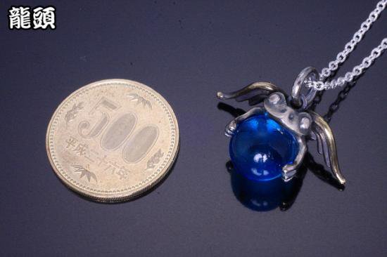 【龍頭】 天使蛙玉 (Blue glass) ネックレス (チェーン付き)