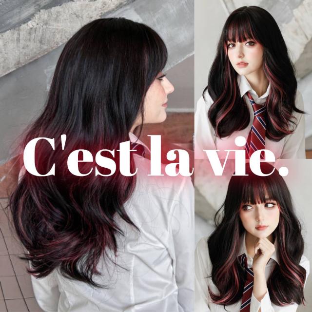 自然な黒髪からチラ見せしているチェリーレッドがカワイイ♪