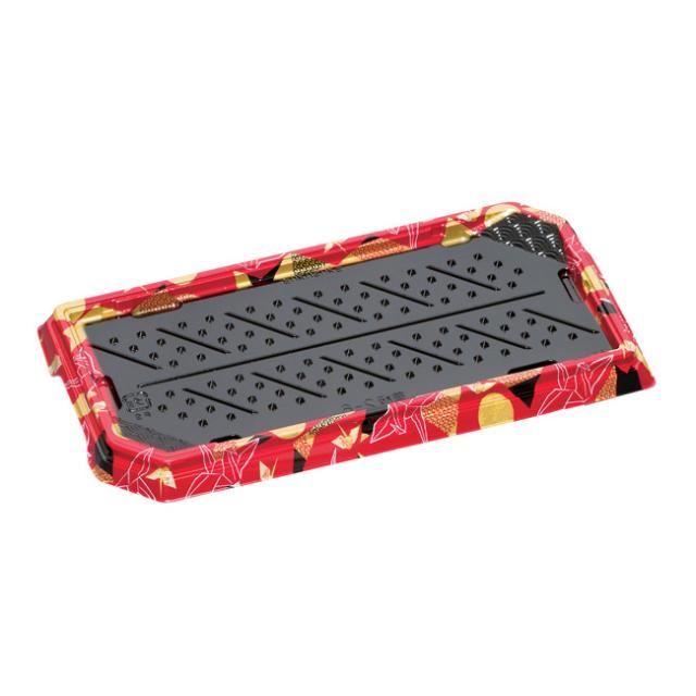 【直送/代引不可】寿司容器 華板2-6H 折づる赤 本体 (12貫) 3000枚