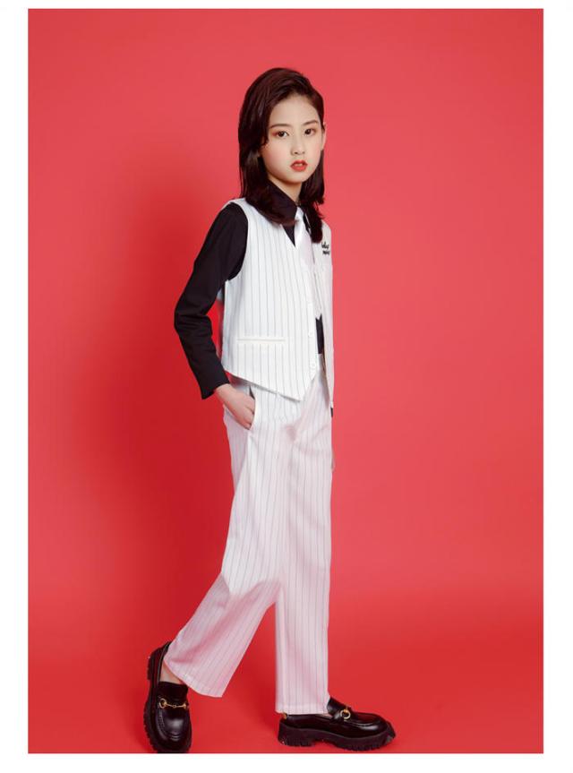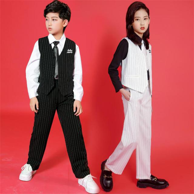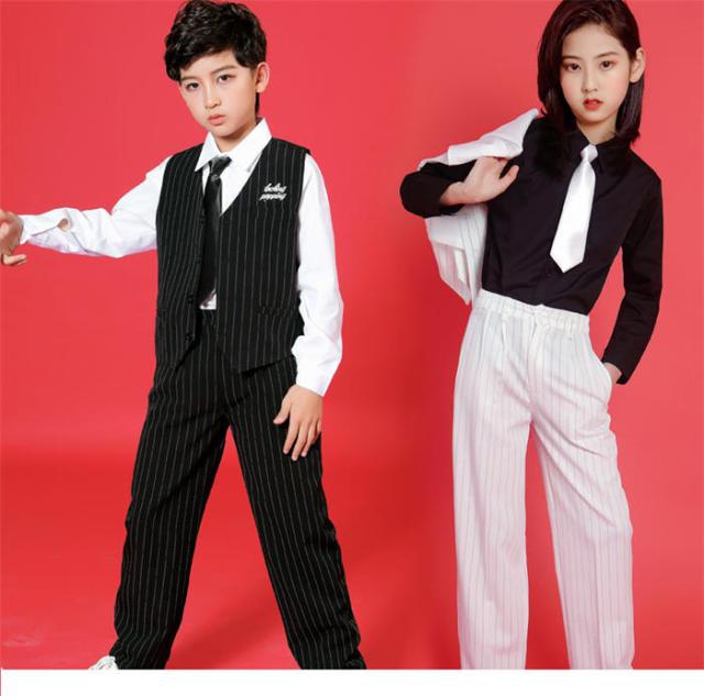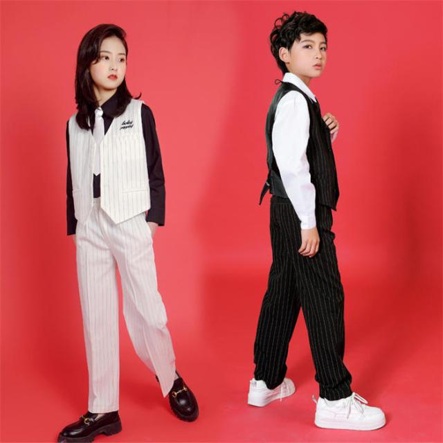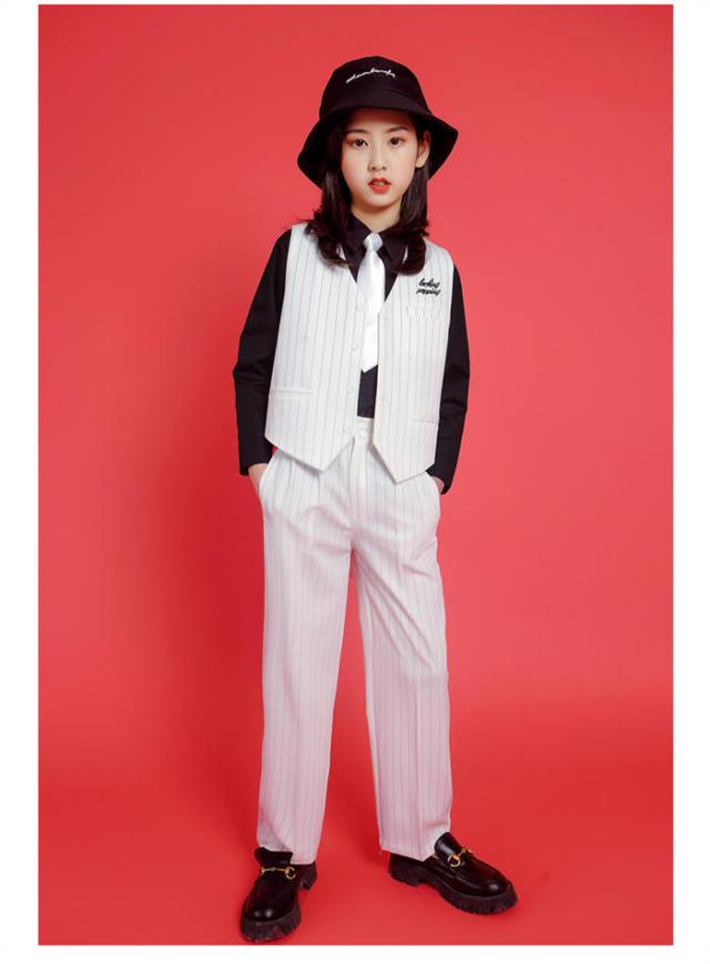 商品名:ダンス衣装 キッズ ジャズダンス 韓国 ロックダンス衣装 キッズダンス HIPHOP 子供 ガールズ JAZZ DANCE スーツセット ベスト スラックス 白 黒 ヒップホップ ジャズダンス ストリートダンス 上下セット ステージ衣装 練習着 演出服 ダンスウェア ファッション イベント衣装 ダンス大会 舞台衣装 4点セット 小学生 男女兼用 人気
