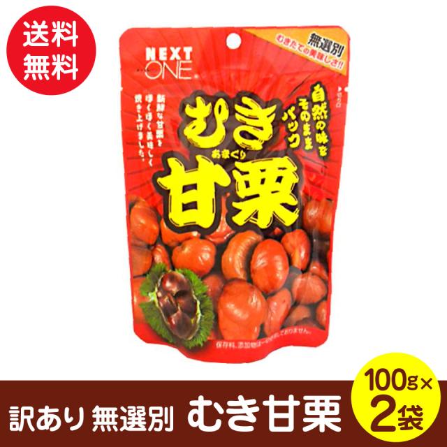 むき甘栗 100gx2袋 無選別 訳あり ポスト投函便 保存料 添加物 不使用 甘栗 栗 送料込み