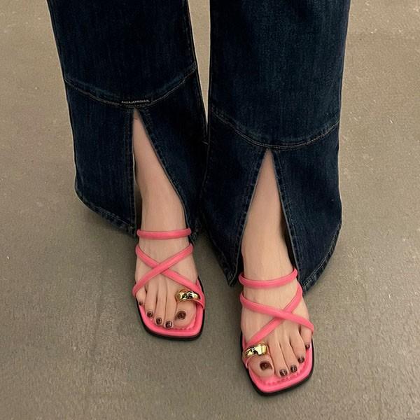【レビュー投稿で+5%還元】トング サンダル ぺたんこサンダル ぺったんこ トングサンダル 華奢ストラップサンダル お洒落なサンダル 歩きやすい ローヒール レディース スクエアトウ チャンキーヒール 太ヒール 安定感 夏 ベルト 靴 女性 大人 美脚 シューズ シンプル