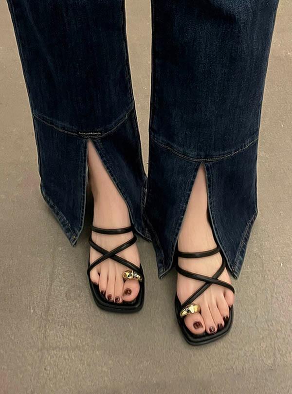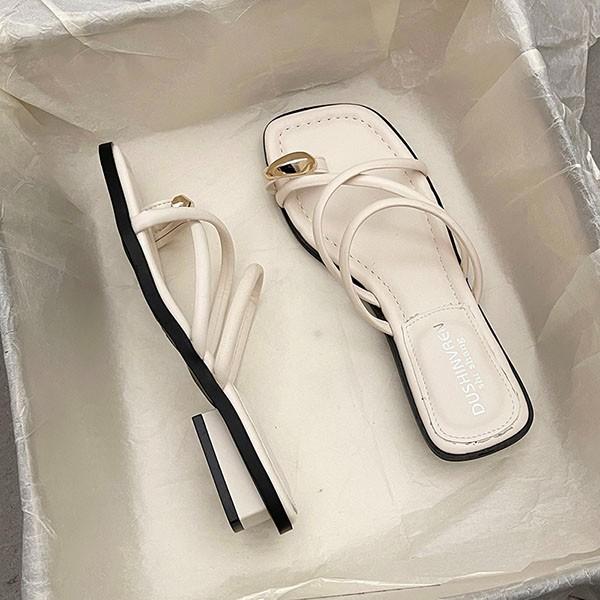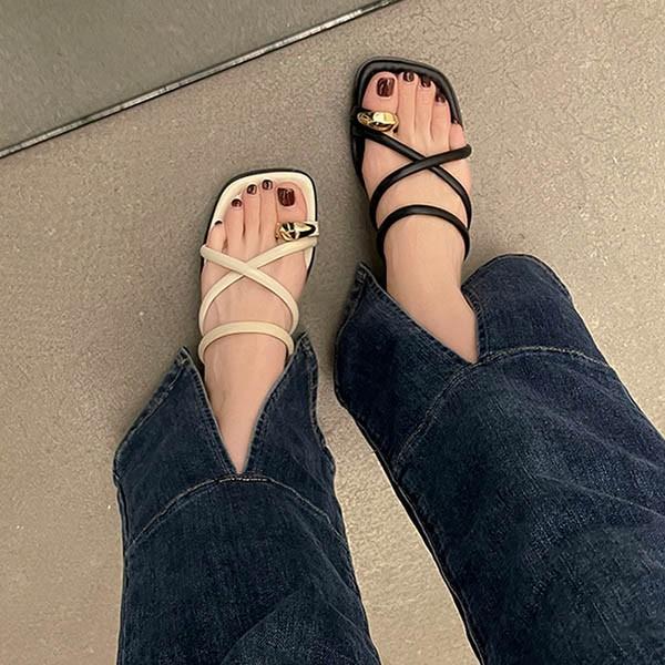 【商品名】トング サンダル ぺたんこサンダル ぺたんこ ぺったんこ トングサンダル 華奢ストラップサンダル お洒落なサンダル 歩きやすい ローヒール レディース スクエアトウ チャンキーヒール 太ヒール 安定感 夏 ベルト 靴 女性 大人 美脚 シューズ シンプル dj025n1n1q3