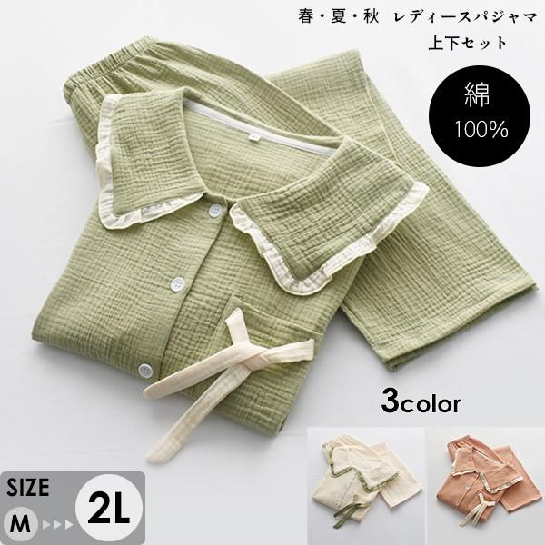【レビュー投稿で+5%還元】ルームウェア レディース 無地 春夏 寝巻き 寝間着 コットン パジャマ 着心地よい 可愛い ゆったり 気持ちいい 半袖 おしゃれ M L 2L グリーン ベージュ オレンジ dh029jc