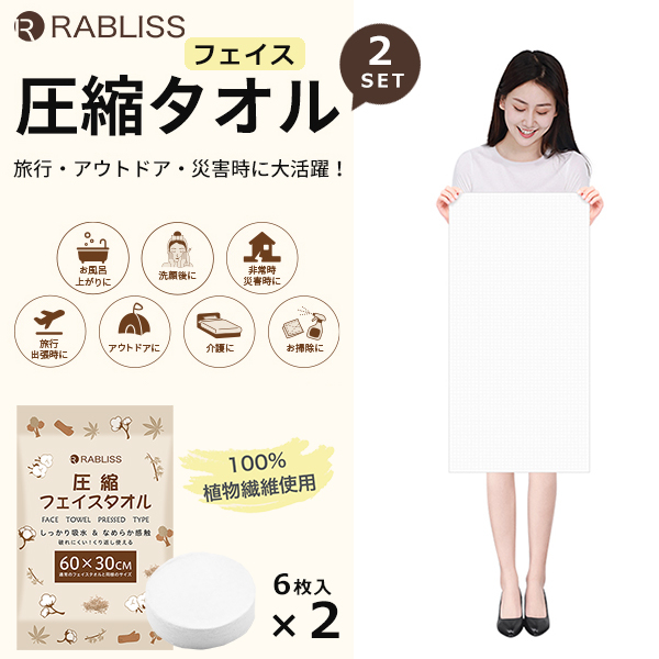 圧縮タオル 使い捨て フェイスタオル 6枚入りx2SET タオル コンパクト 折りたたみ アウトドア ハンド ウォッシュ 介護 掃除 災害対策 非常時 緊急時 防災 個包装